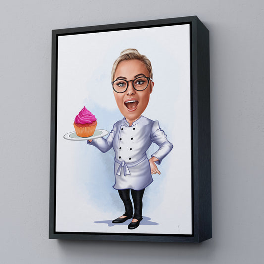Kişiselleştirilmiş Pasta Şefi Temalı Karikatür Tablo