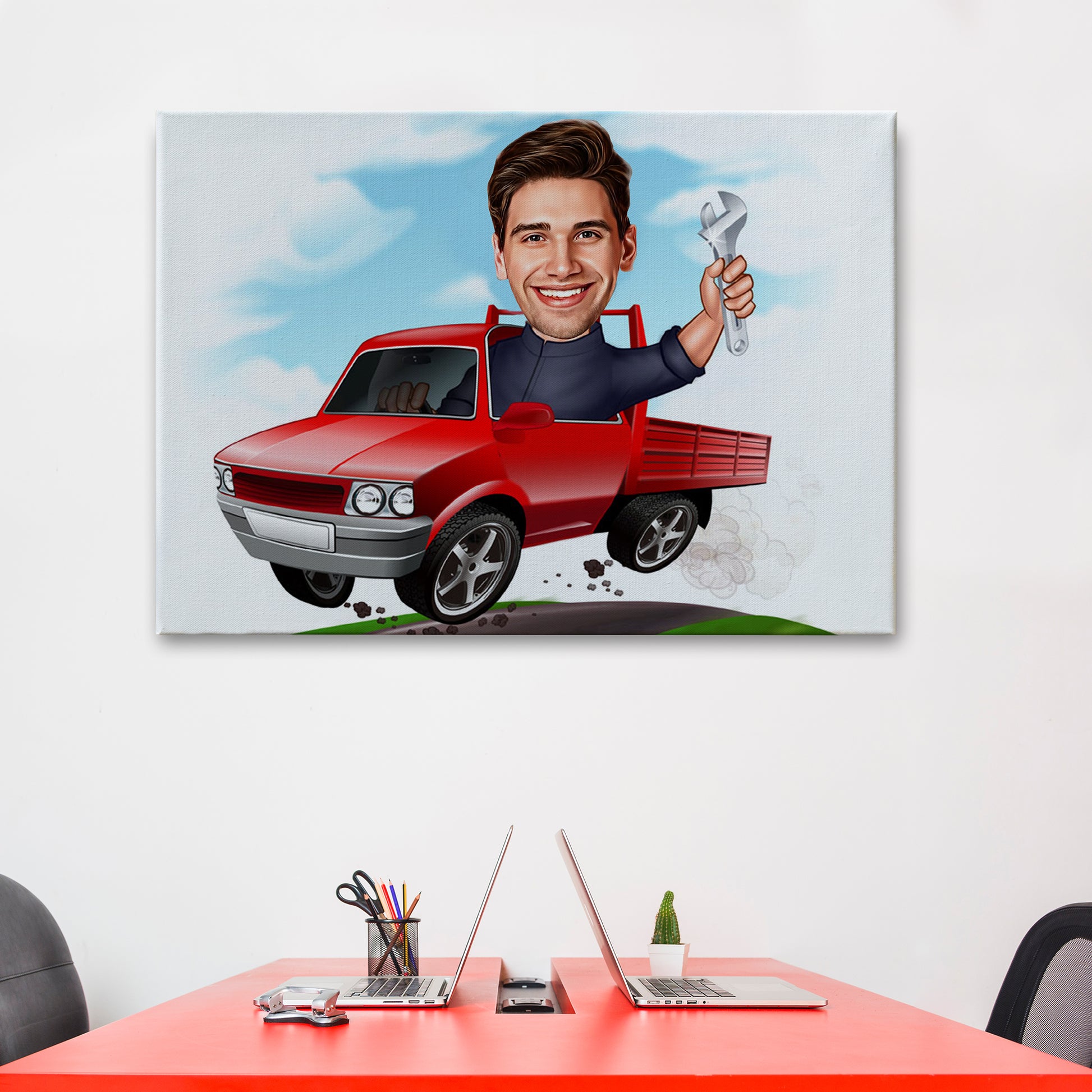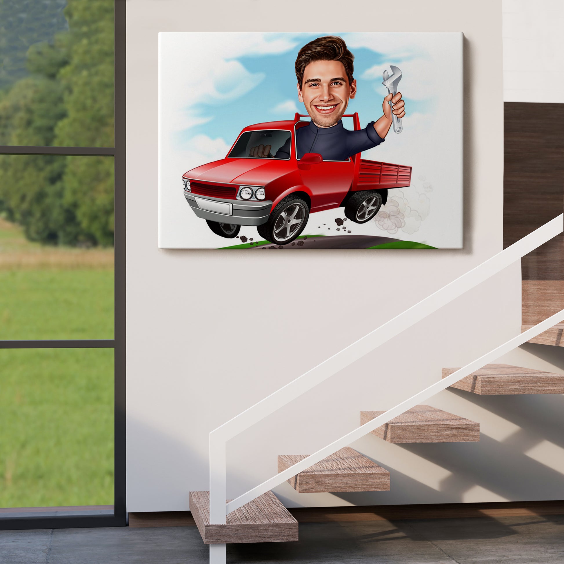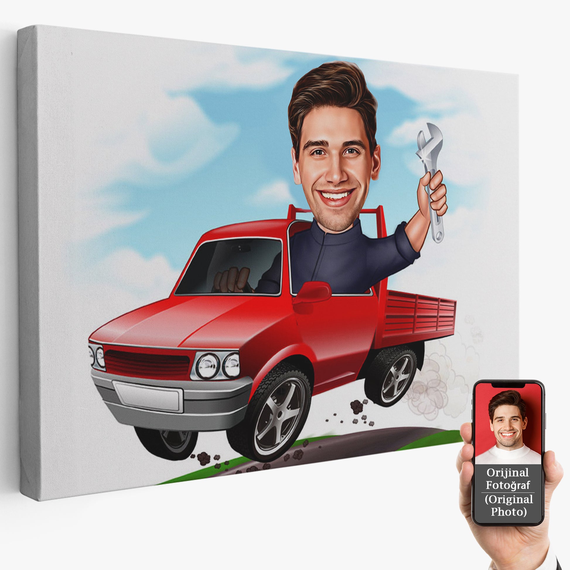 Kişiselleştirilmiş Araba Tamircisi Temalı Karikatür Tablo