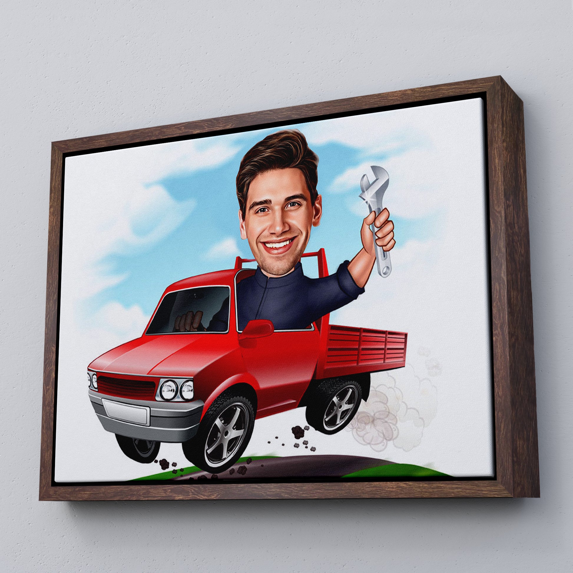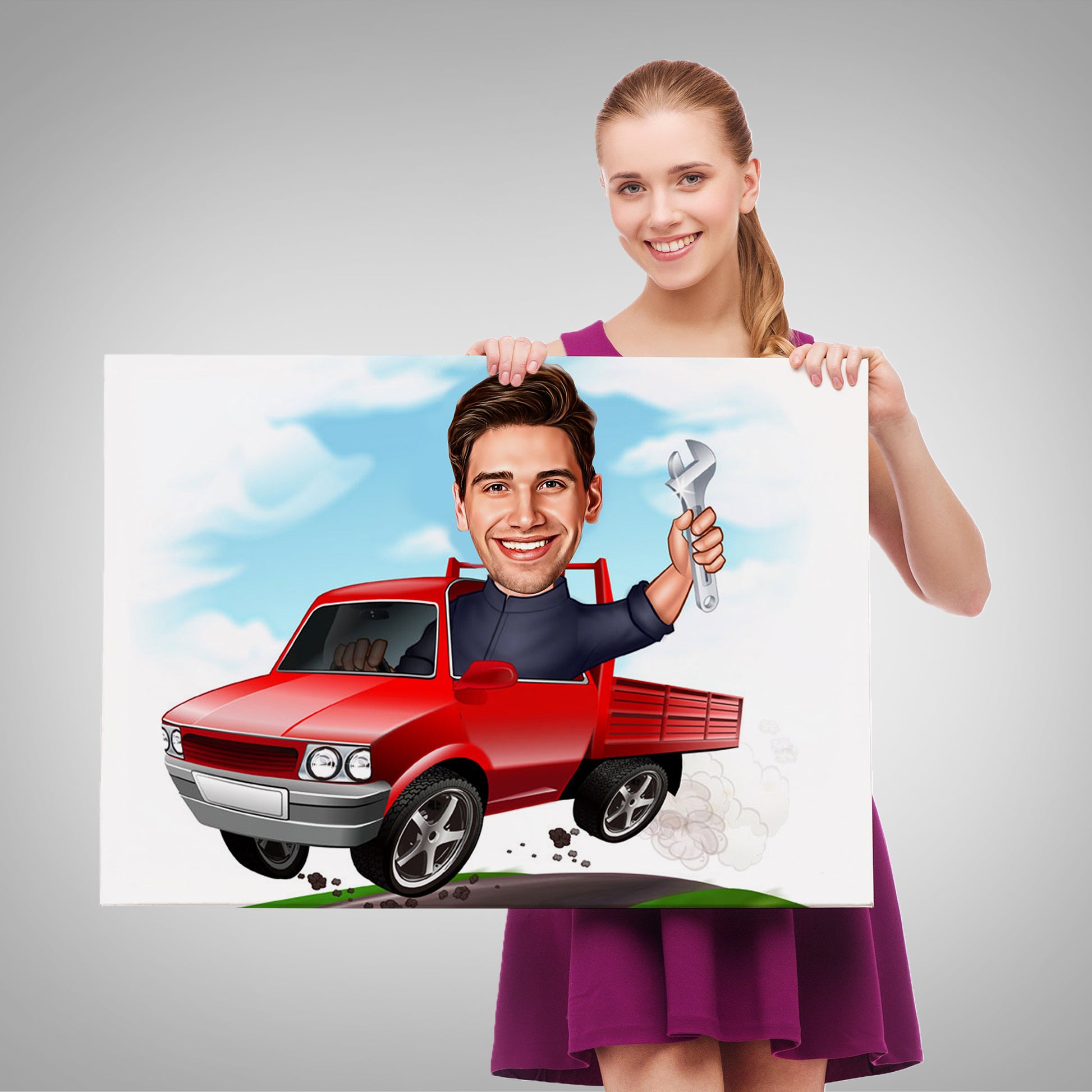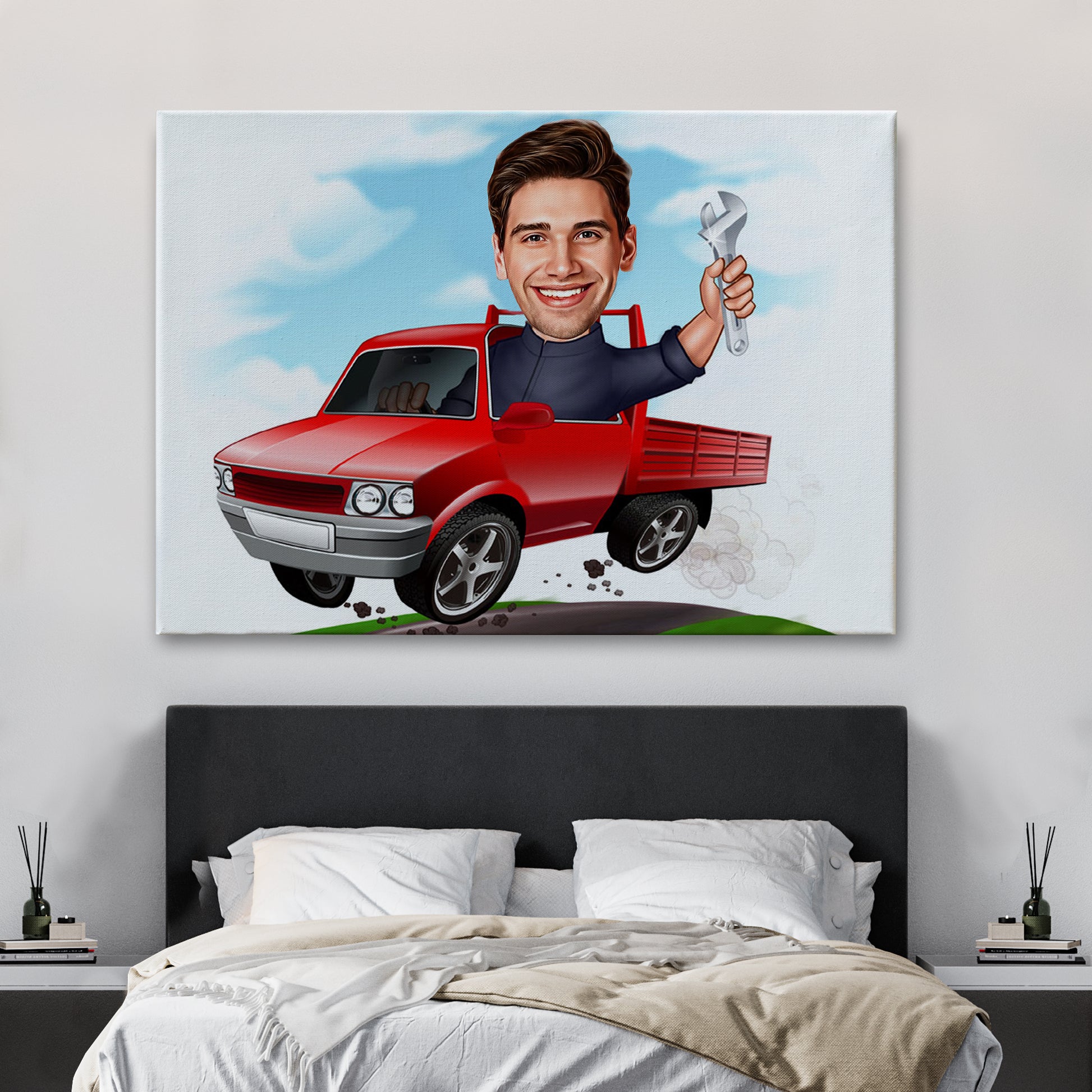 Kişiselleştirilmiş Araba Tamircisi Temalı Karikatür Tablo