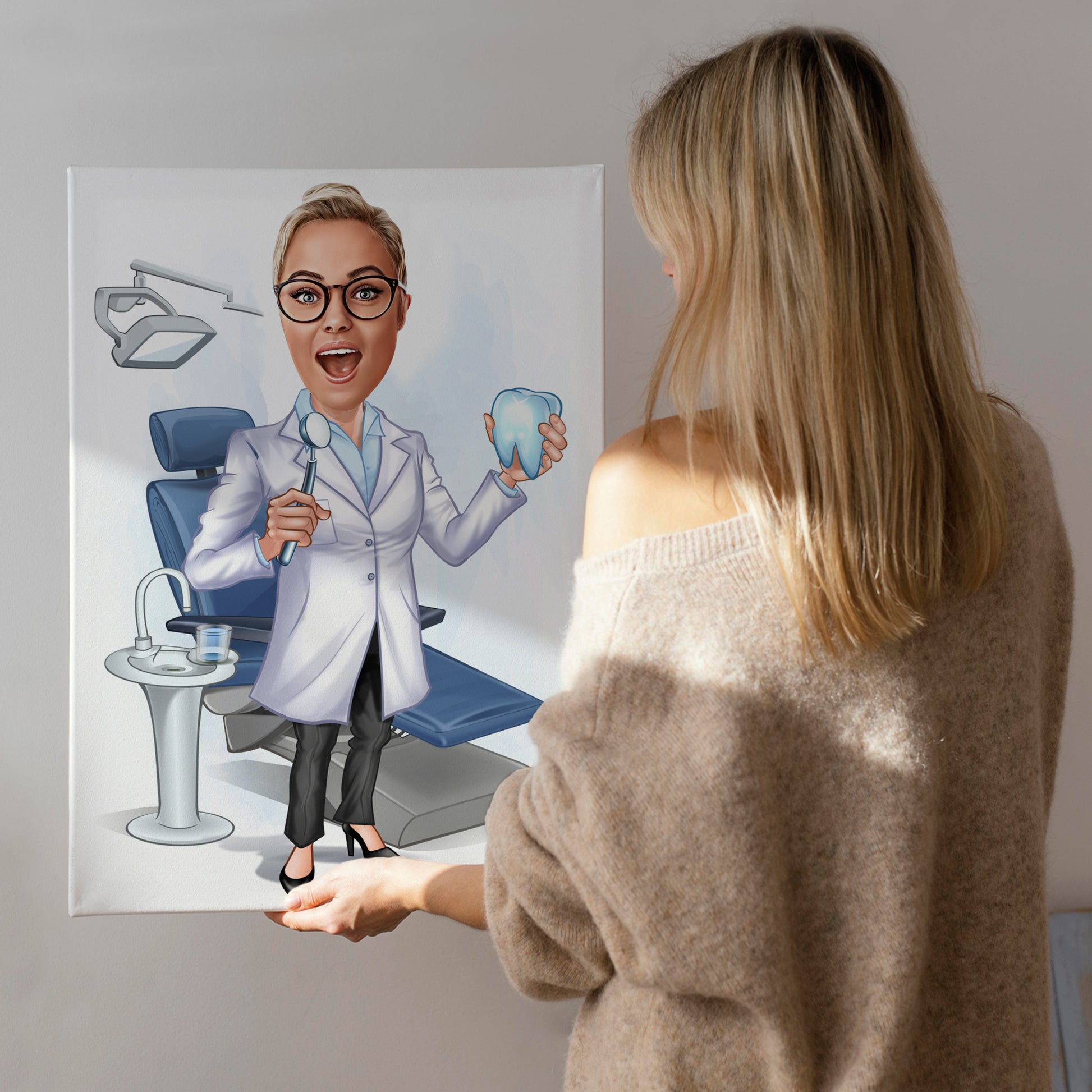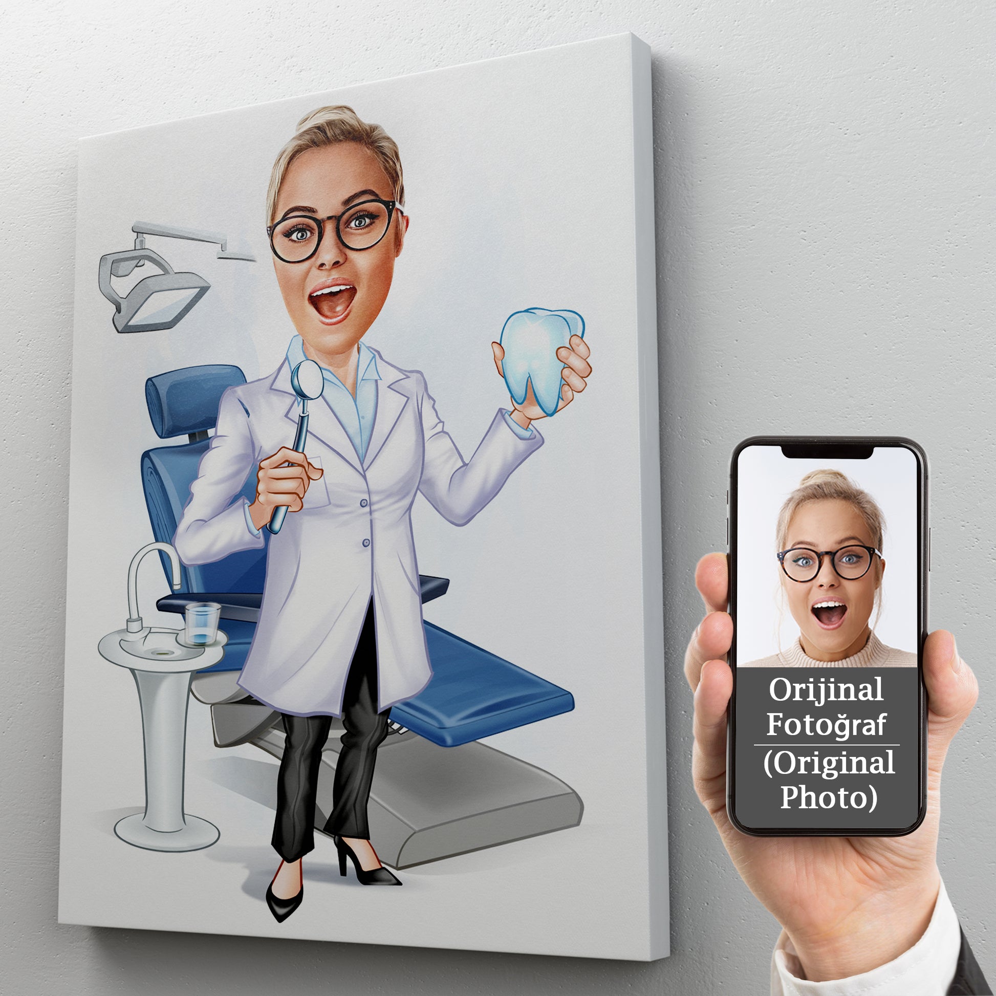 Bu ürün, sevdikleriniz için özel bir anı oluşturmanıza olanak sağlar. Kişiye özel diş hekimi ofisi karikatür tablonuz, herkesin dikkatini çekerek ev dekorasyonunuzu veya hediye olarak paylaşmanızı daha eğlenceli ve kişiselleştirmeye yardımcı olur.
