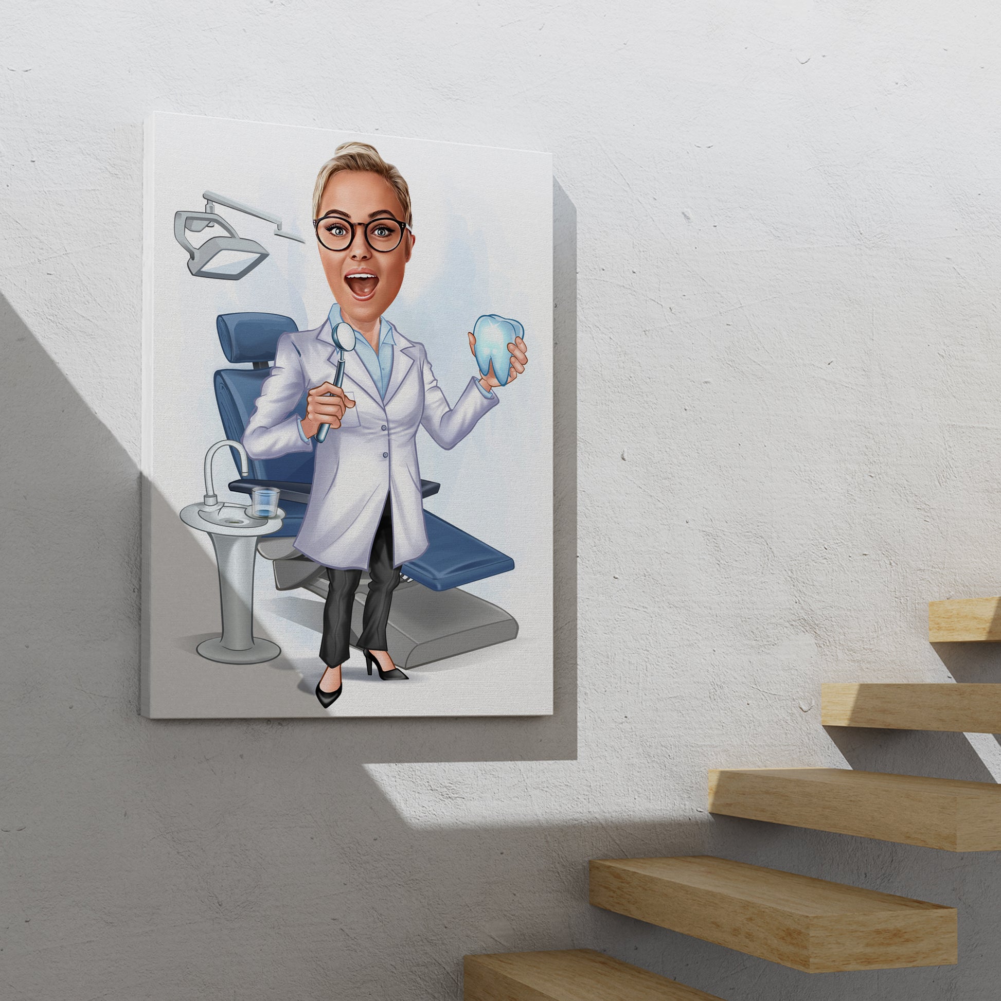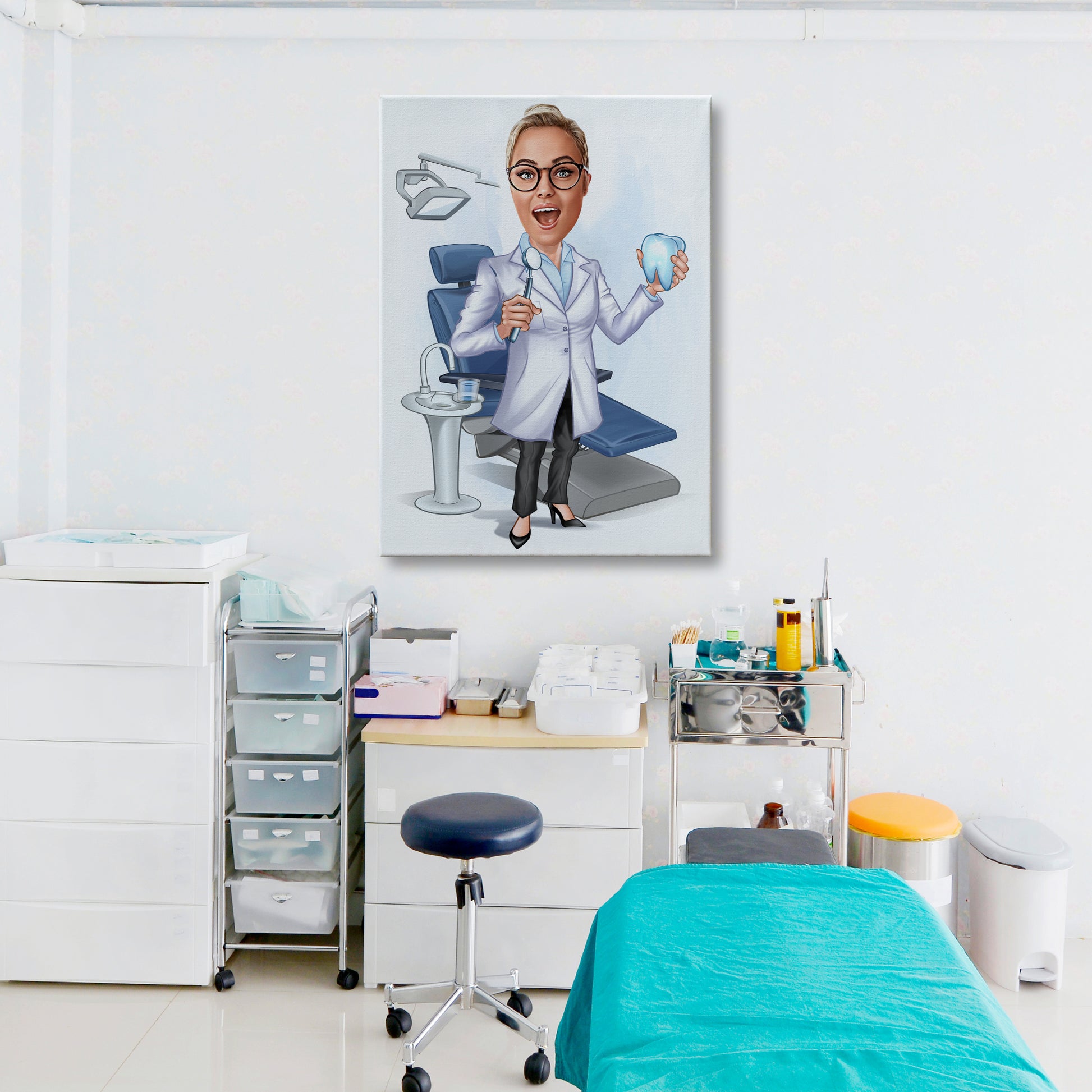 Kişiselleştirilmiş Diş Hekimi ve Ofisi Temalı Karikatür Tablo