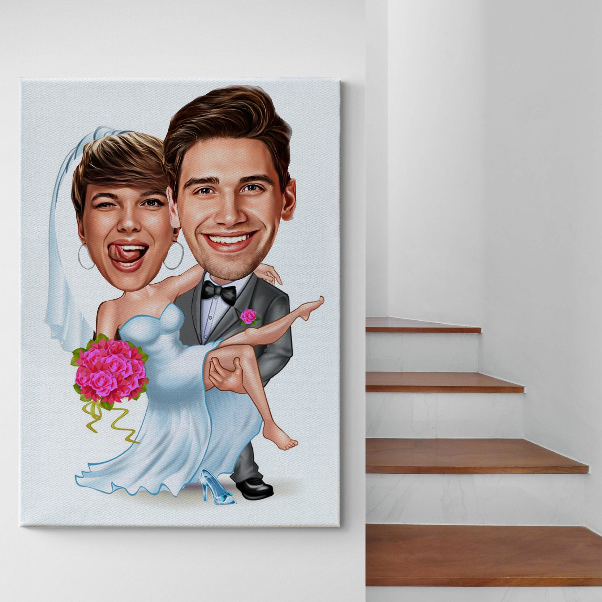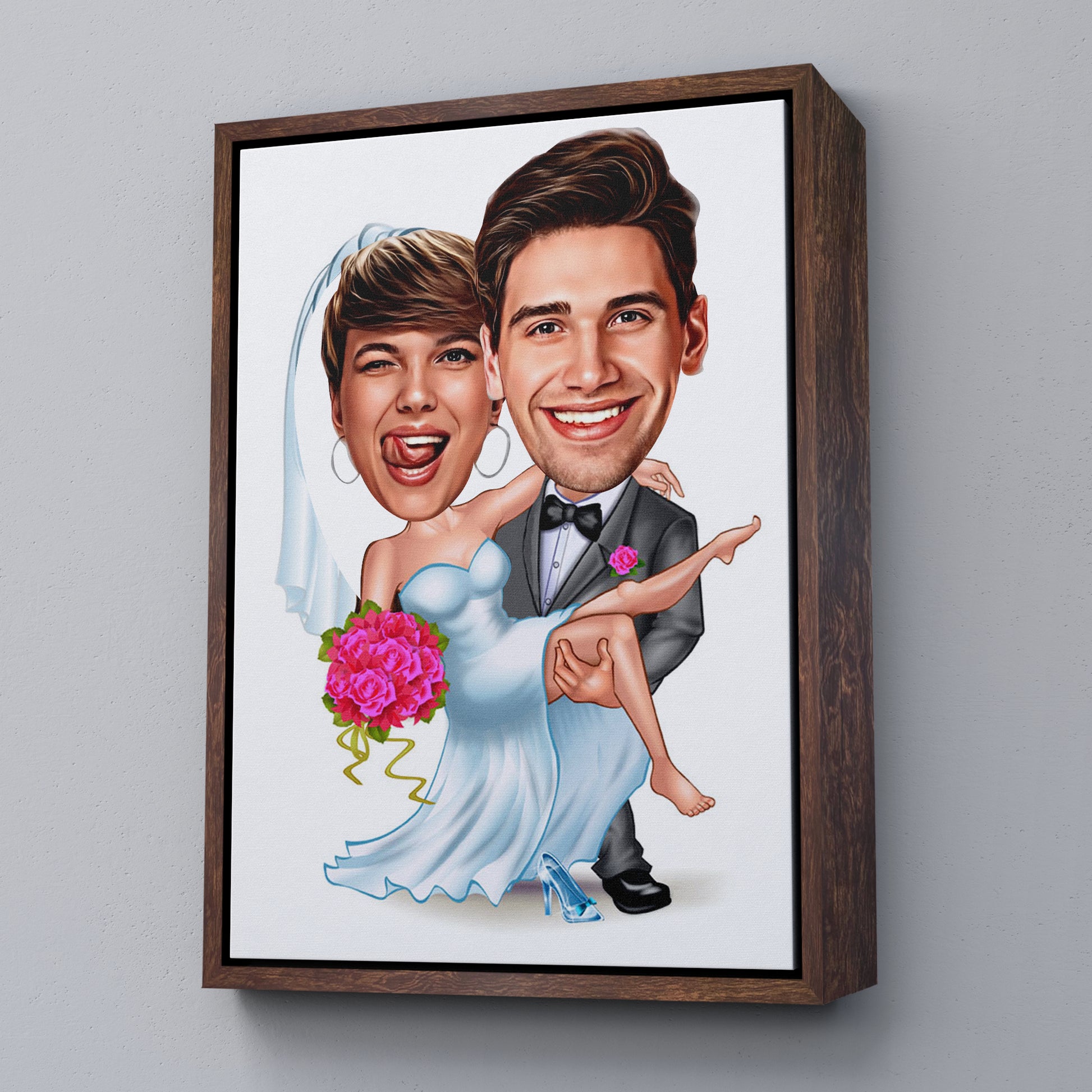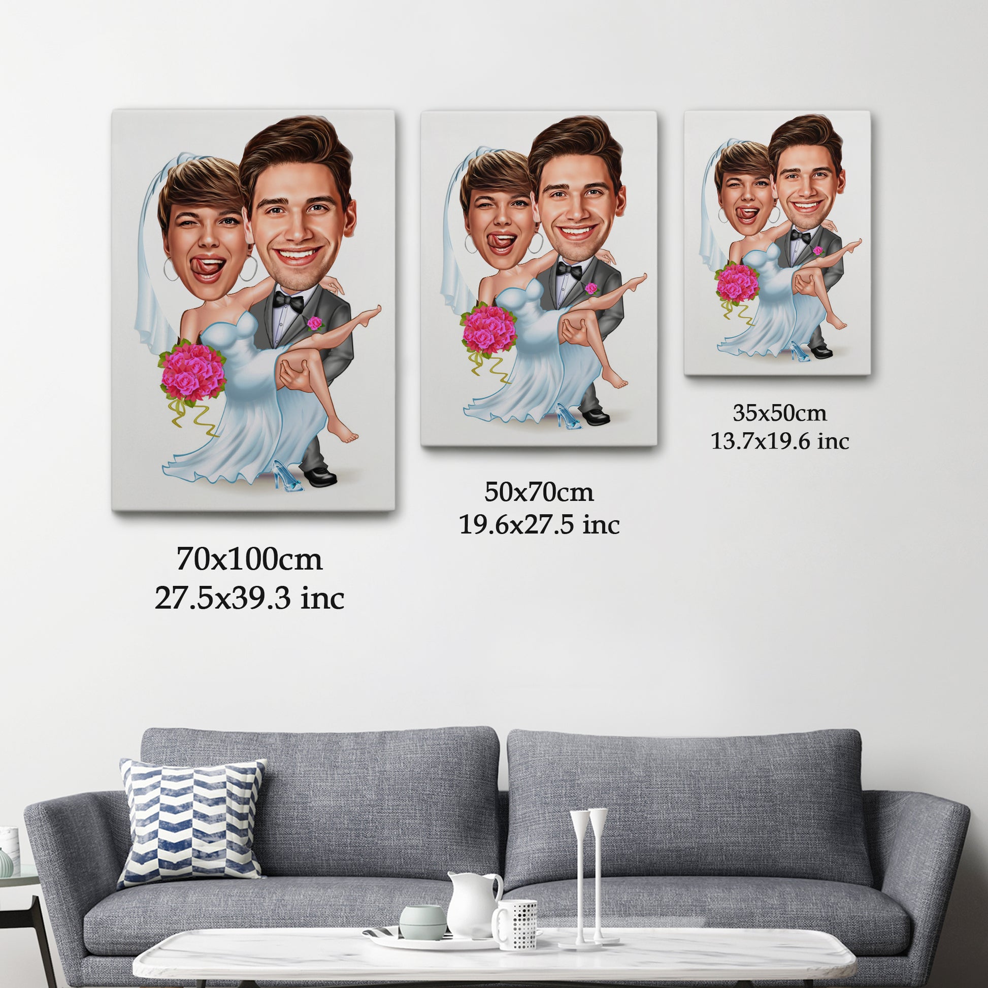 Kişiselleştirilmiş Düğün Temalı Karikatür Tablo