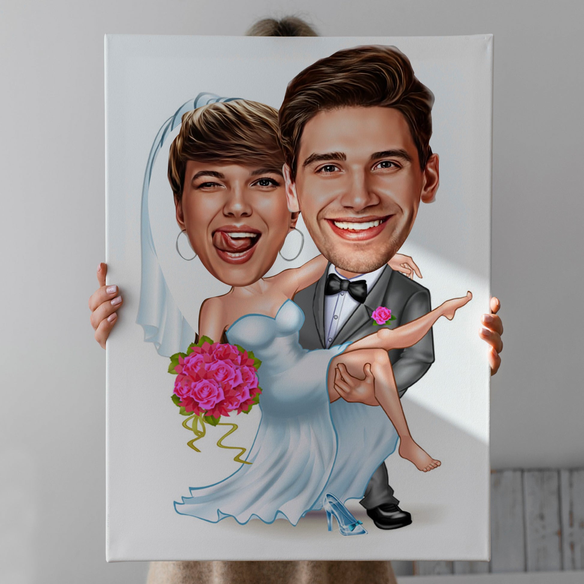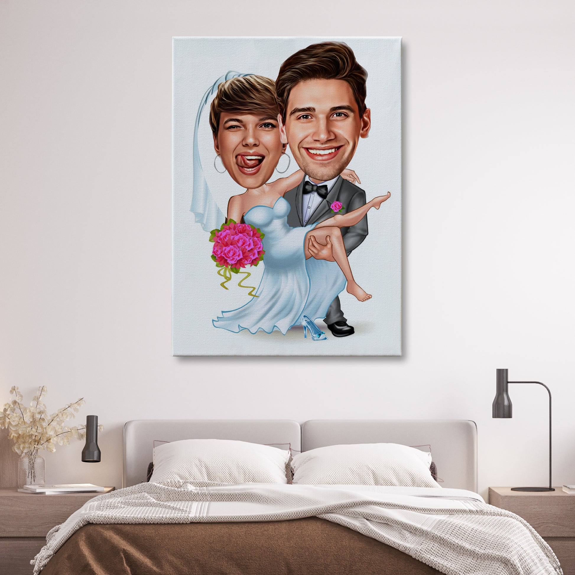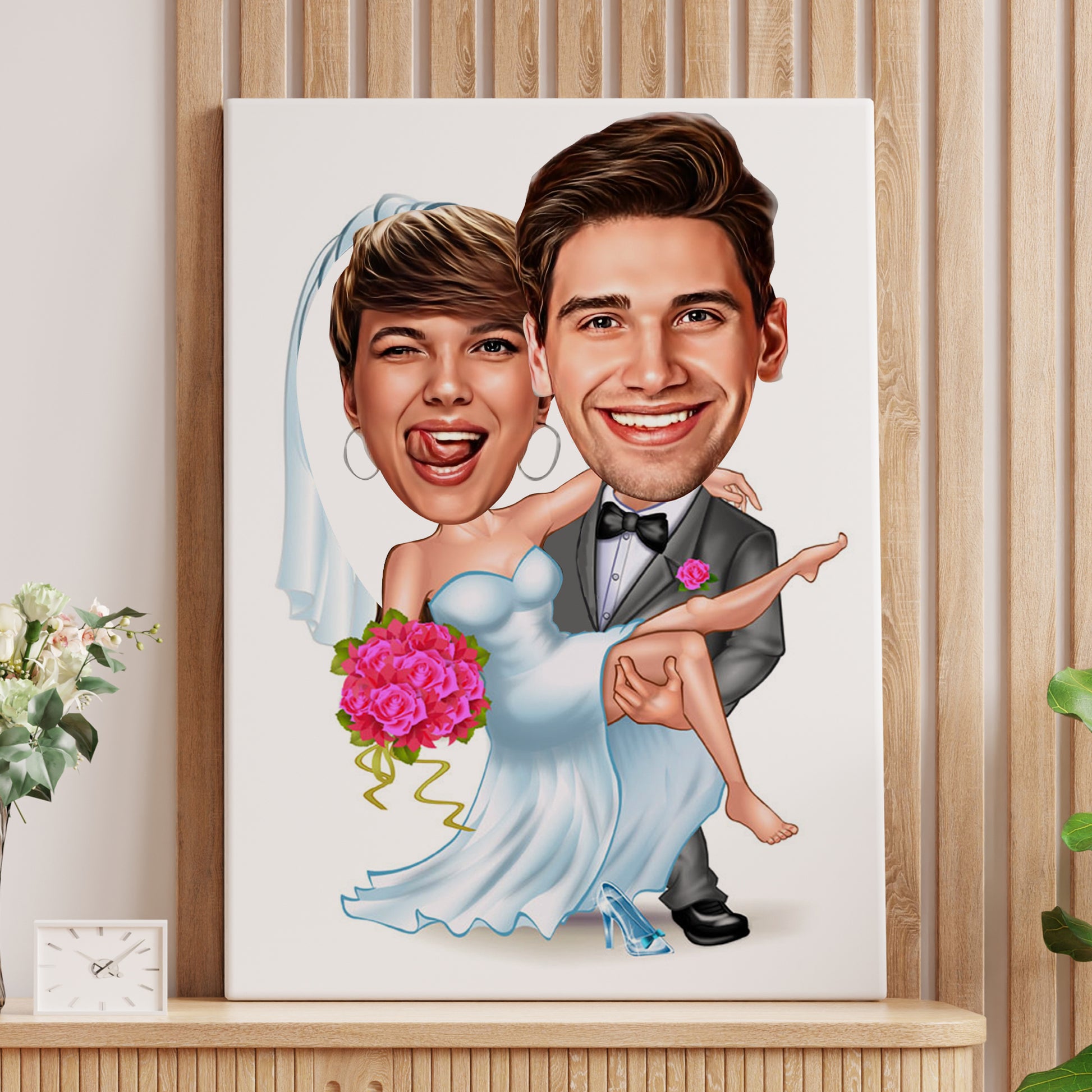 Kişiselleştirilmiş Düğün Temalı Karikatür Tablo