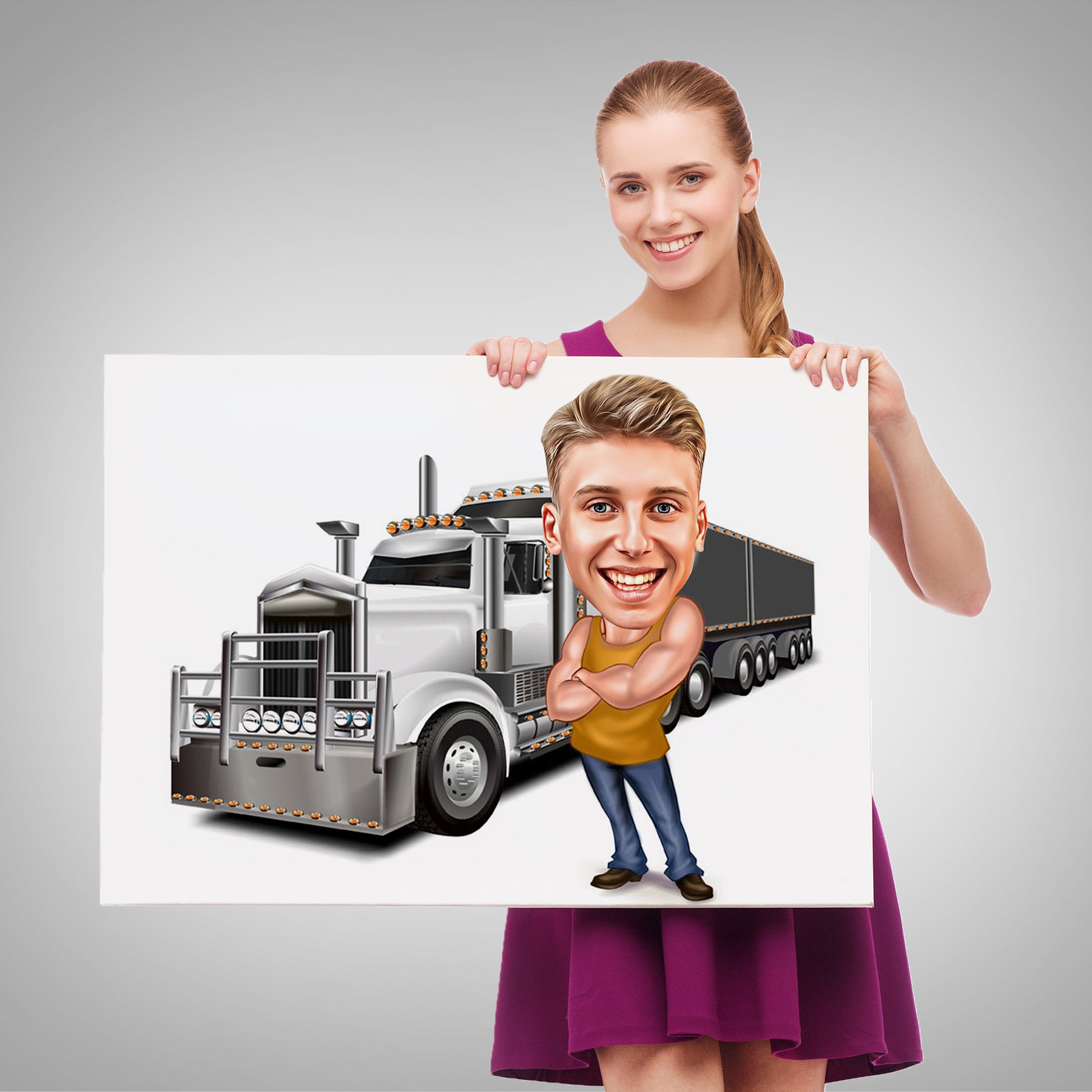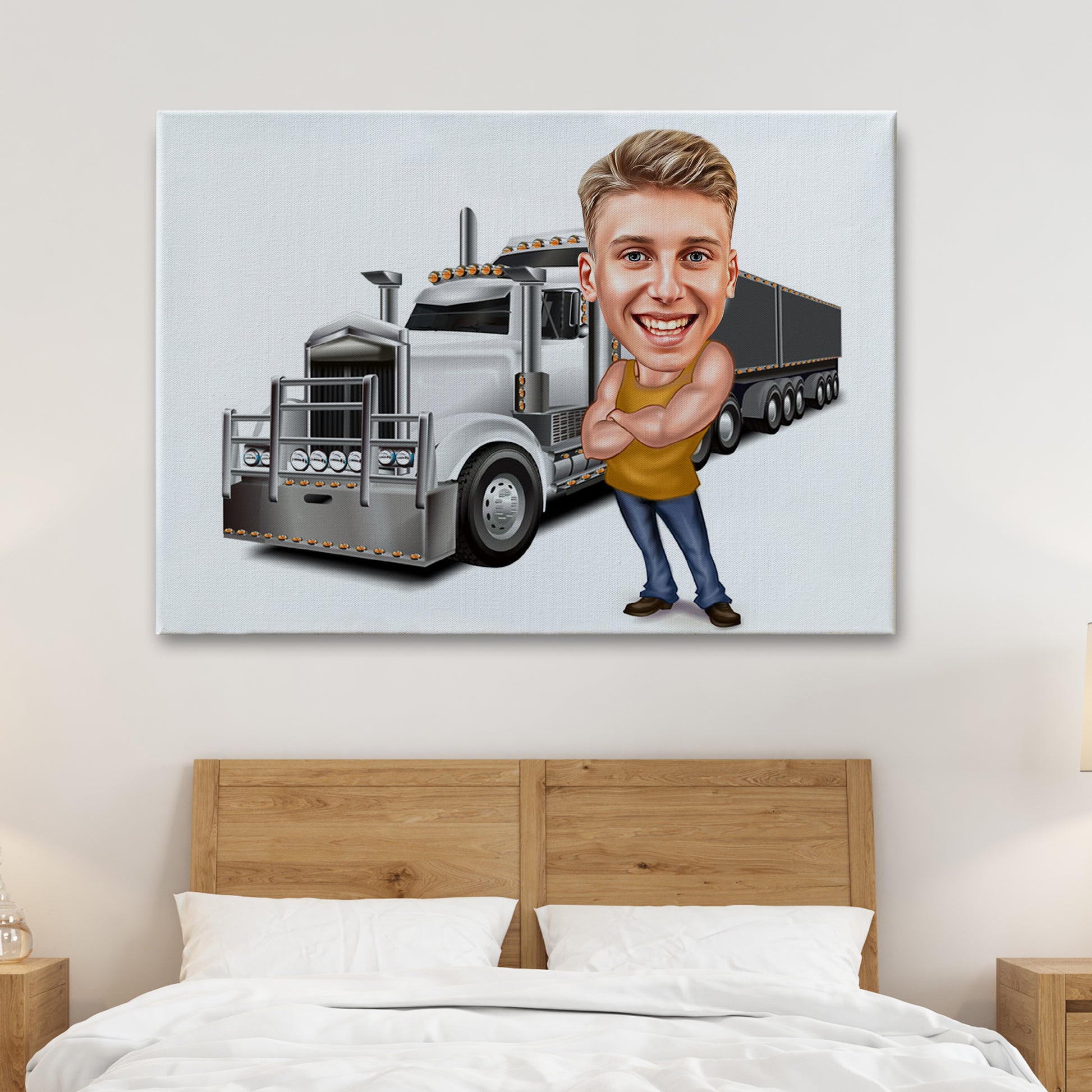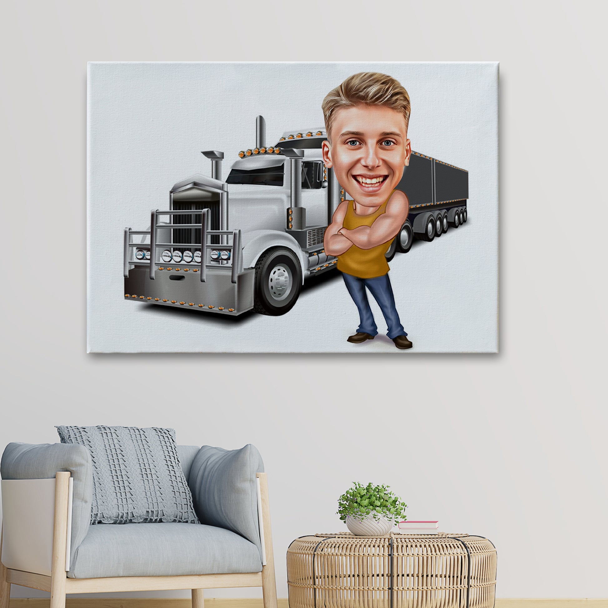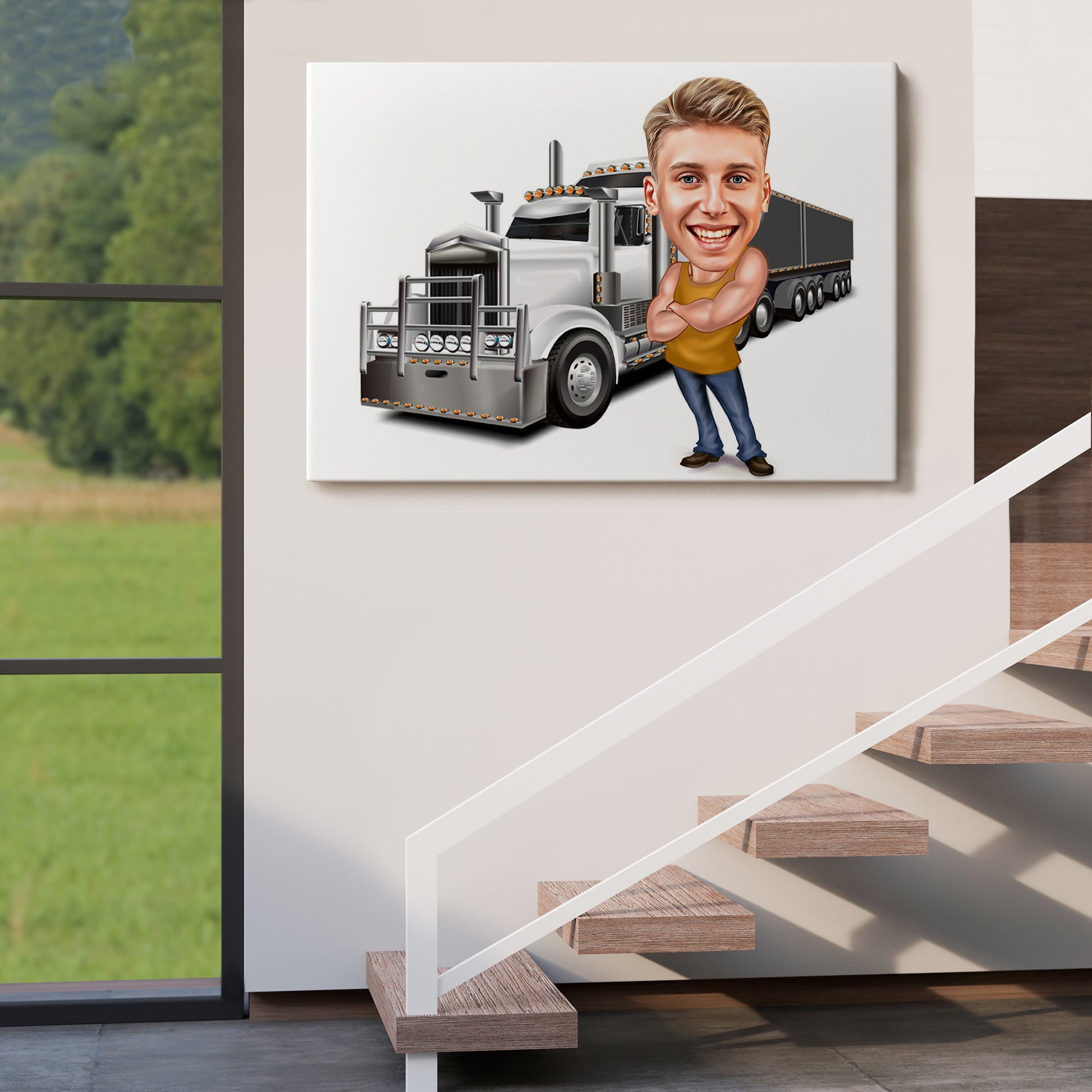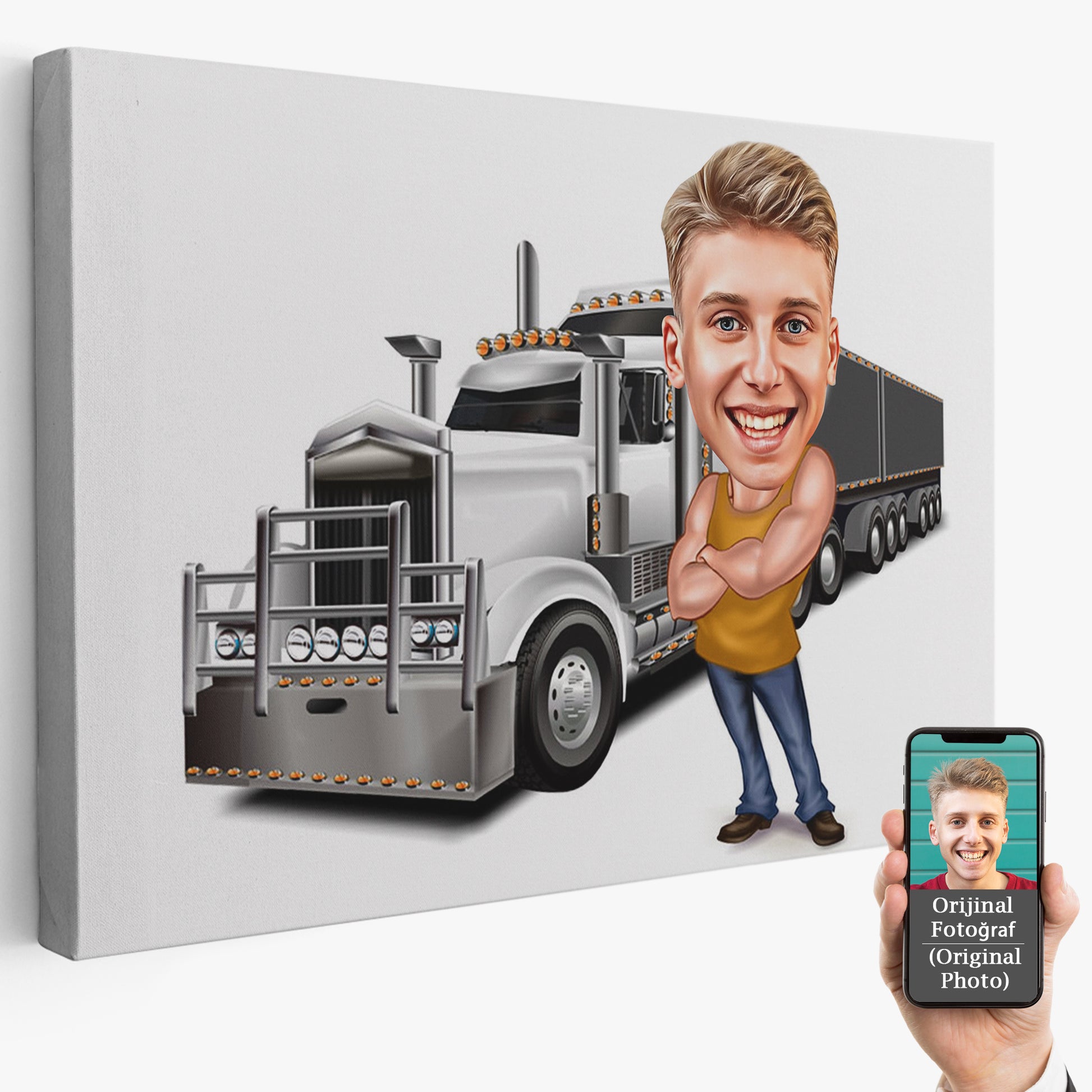 Kişiselleştirilmiş Kamyoncu Temalı Karikatür Tablo