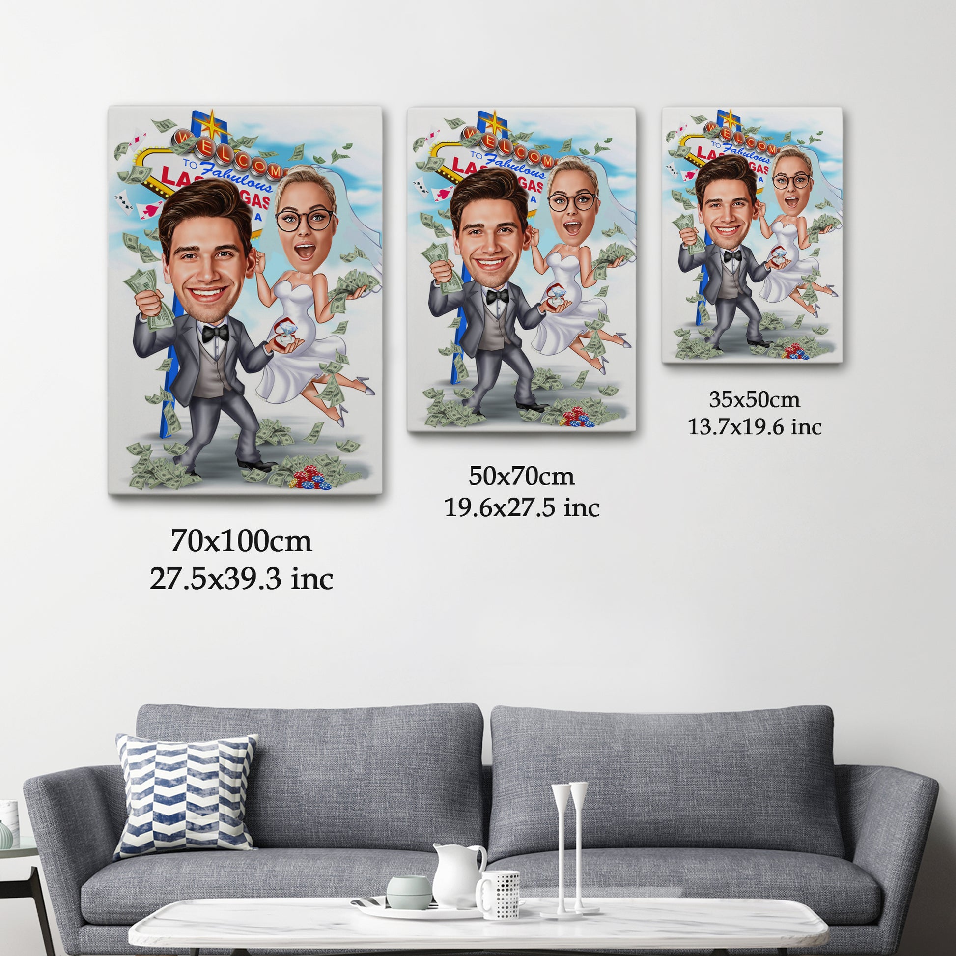 Kişiselleştirilmiş Las Vegas Temalı Düğün Karikatür Tablo