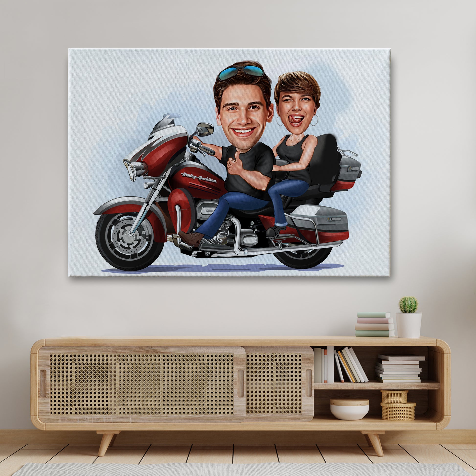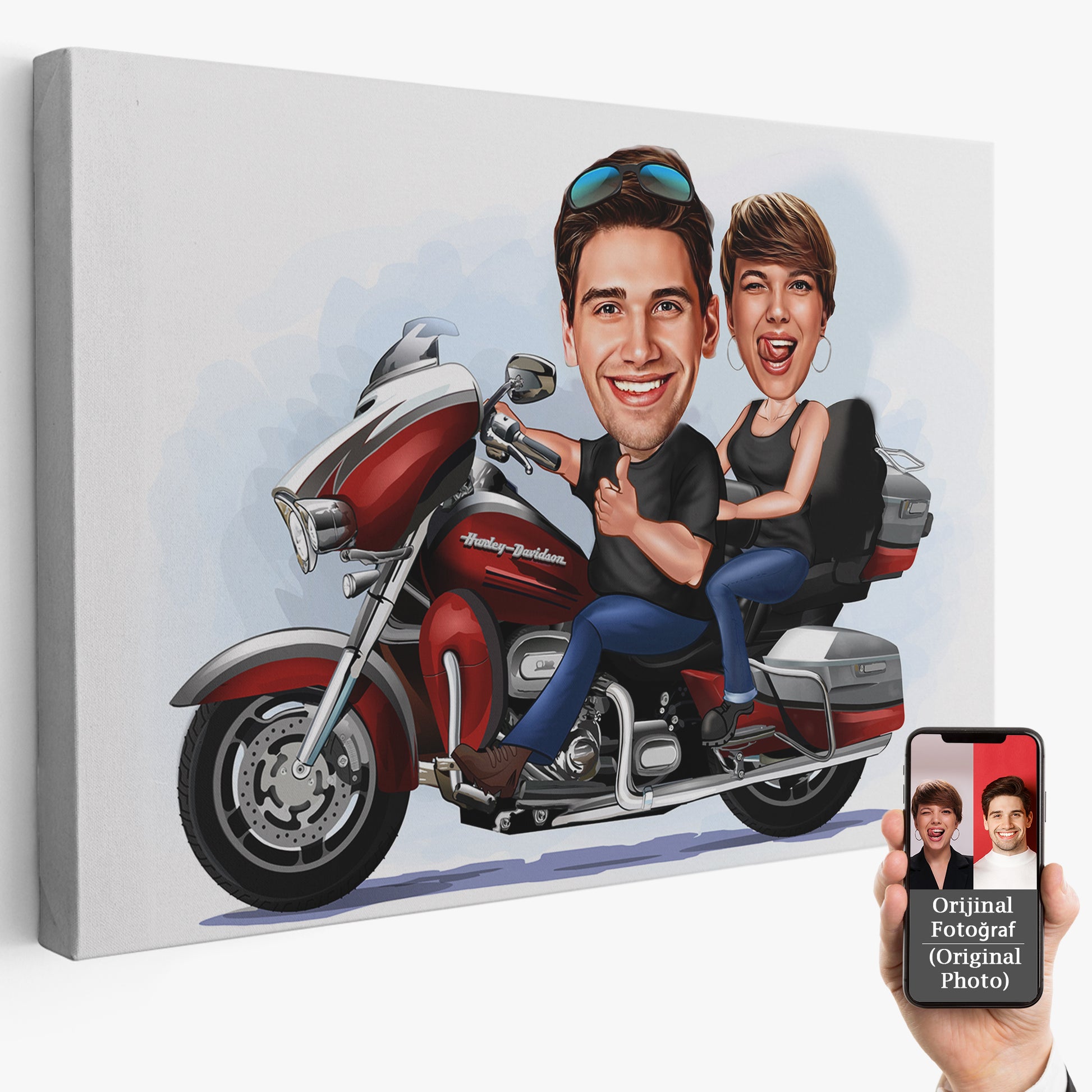 Kişiselleştirilmiş Motorcu Temalı Karikatür Tablo