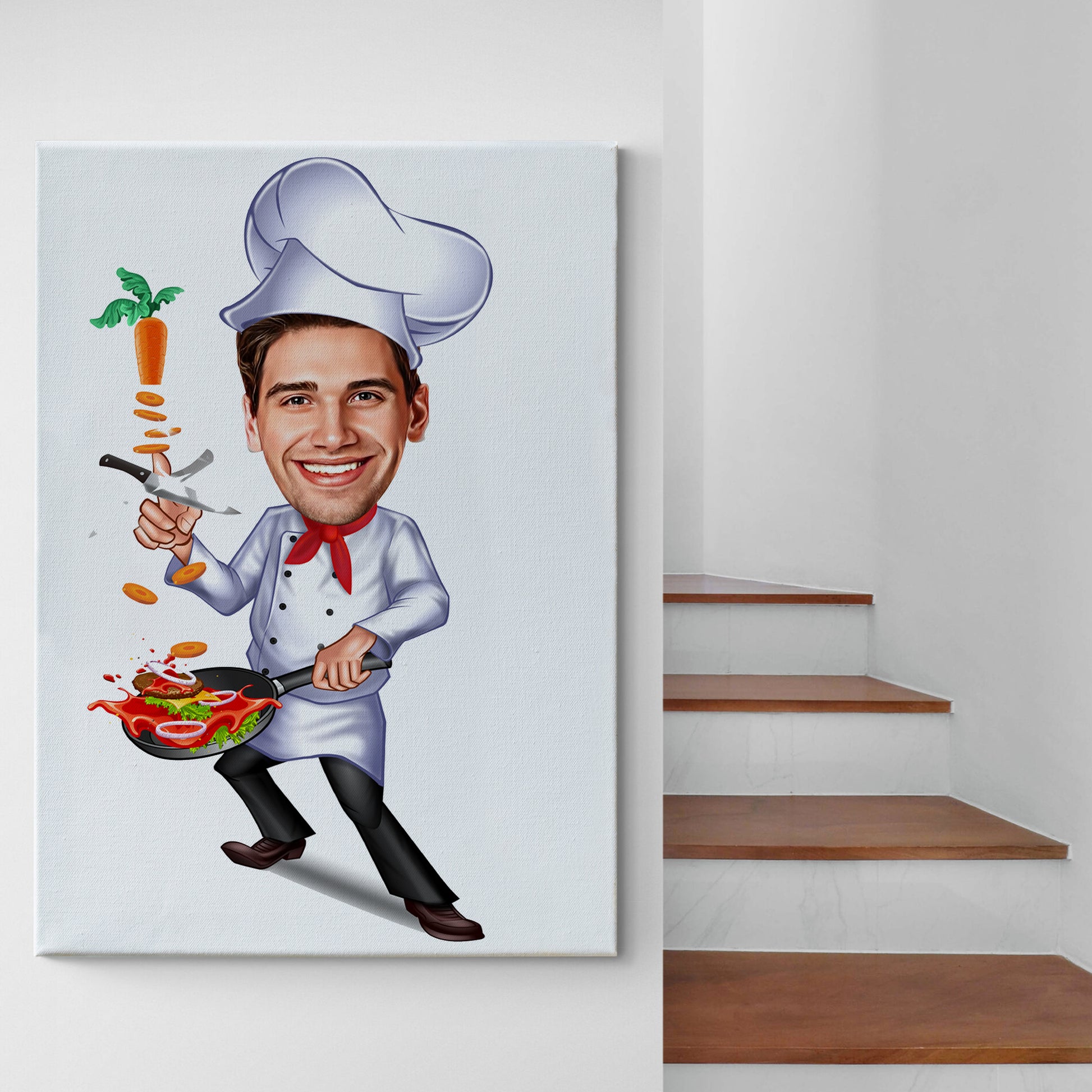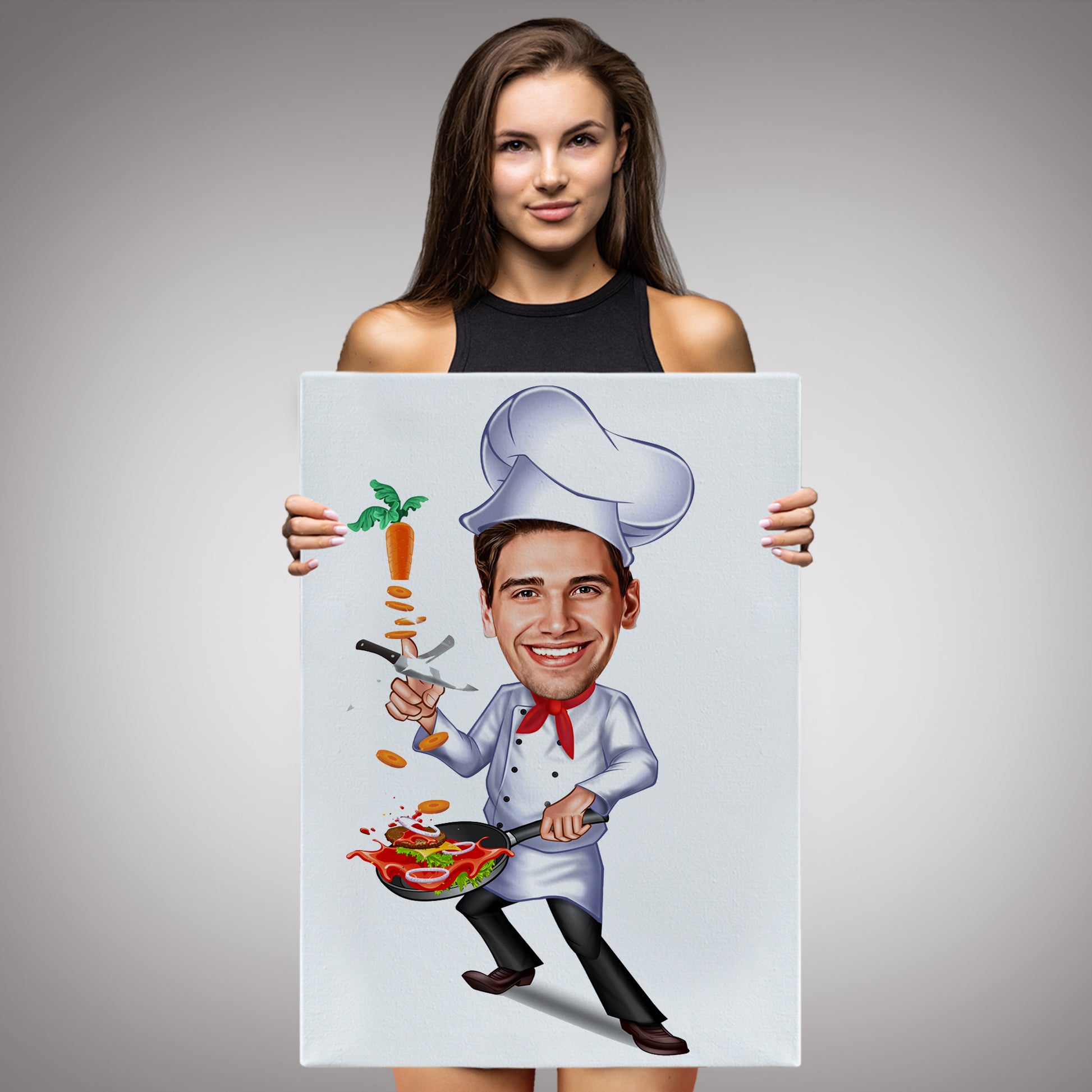 Kişiselleştirilmiş Mutfak Şefi Temalı Karikatür Tablo
