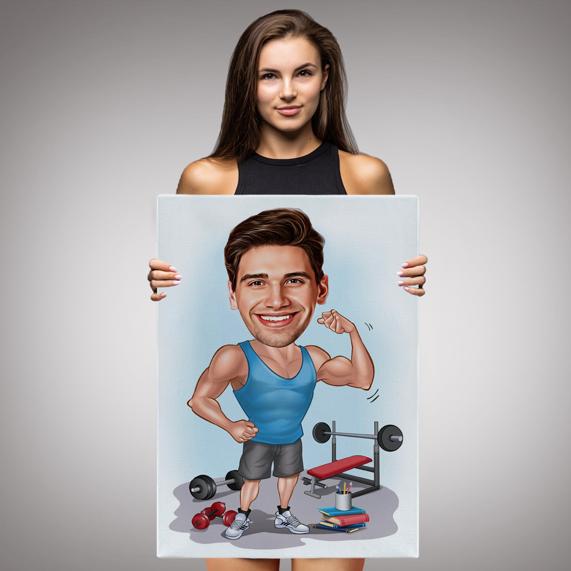 Bu ürün, sevdikleriniz için özel bir anı oluşturmanıza olanak sağlar. Kişiye özel spor ve fitness karikatür tablonuz, herkesin dikkatini çekerek ev dekorasyonunuzu veya ofis ortamınızı daha eğlenceli ve kişiselleştirmeye yardımcı olur.